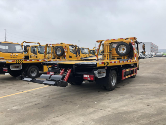 一體板:3噸上裝,4噸卷揚,21米鋼絲繩,3噸后拖臂,底板為花紋一體板(可選沖壓板),板長5.2米,雙側聯動操作,配四根捆綁帶,**小車一套,L型抱胎架一對,工具箱一個,LED工作照明燈一對,其余標配。
