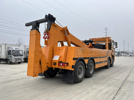 上裝配置:25T20D聯體式上裝,進口閥,二節式六邊型吊臂,25噸三節托臂,分體式車廂(車廂電泳),雙側聯動操作裝置,兩個十噸液壓卷揚,四十五米鋼絲繩,直徑18MM,配四套鋼叉,一套拖叉套,一套鋼板吊耳拖叉,一套抱胎裝置,一個長排工程**,**燈一套,**氣管總成一套,捆綁鏈條兩根,后托臂三聯無線遙控操作,其余標配。